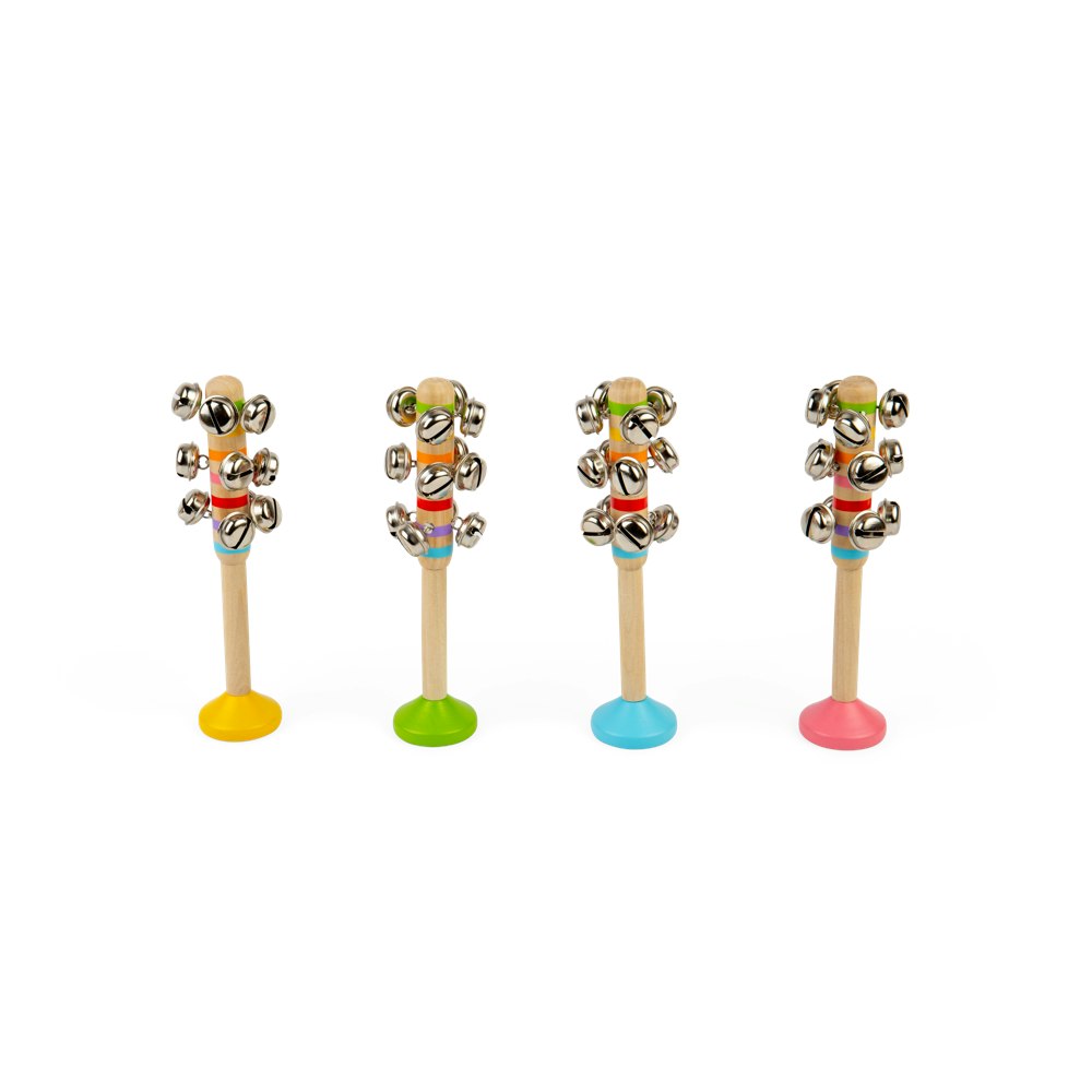 With a bright, wooden handle and a cluster of jingle bells, this musical toy encourages creativity while helping develop fine motor skills. Perfect for music time, group activities, or simply playful noise-making, it's a fun and educational gift for babies and toddlers alike.